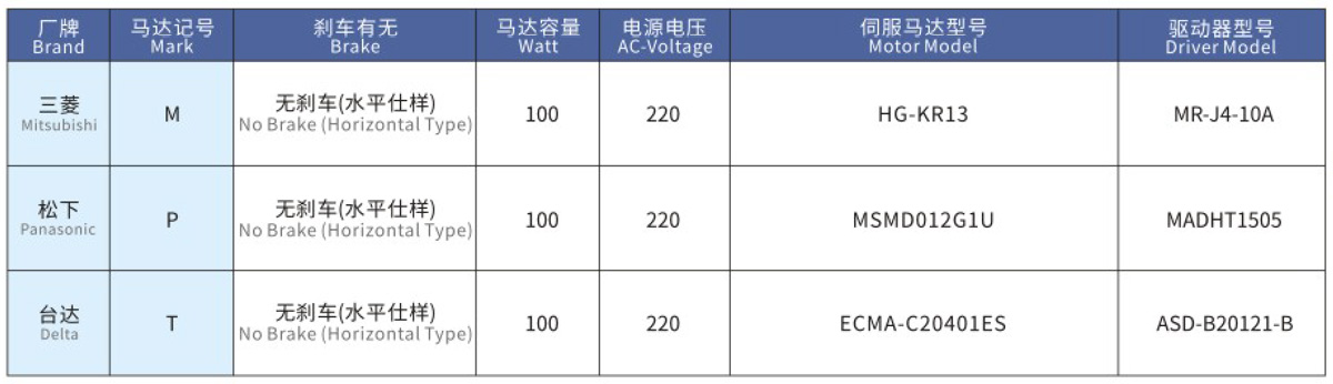 搭配伺服马达一览表