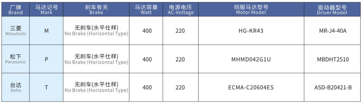 搭配伺服马达一览表